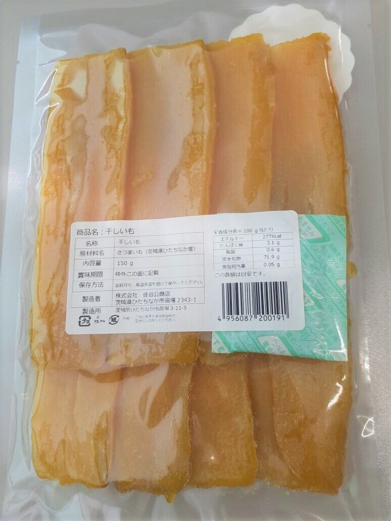 干しいもの本場、茨城県ひたちなか市産の干しいもです。甘みが強く柔らかい食感の紅はるかです。厳選された干しいもが150g入っています。